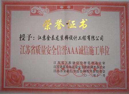 江苏省质量安全信誉AAA诚信施工单位